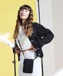 Adjustable webbing belt with secure clip fastener. Headphone port. Zippered rear pocket. Large zippered main pocket. Internal mesh pocket. Key hook.