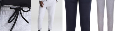 Oversized straight leg. Open hem. Thick elasticated waistband. Inner drawcord. Brushed inner fleece. Side pockets. Back patch pocket. Tear-away label. 100% cotton-faced fabric.