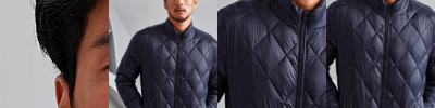 Tonal coil zip on centre front with signature zip puller with mousetail piping on CF zip and internal storm flap with chin guard. Diamond stitched sandwiched baffles. 245gsm polyester fill. Stretch elastic around armholes and hem for added protection. Binding around internal seams. Smartphone friendly - internal self loop attachment for headphone wire. Cire finish semi shine face fabric. Product contains no branded neck label.* Removable Kimble or looped garment tags. Inner seam label holds important product information on one label with a second label containing brand information which can be cut-away.